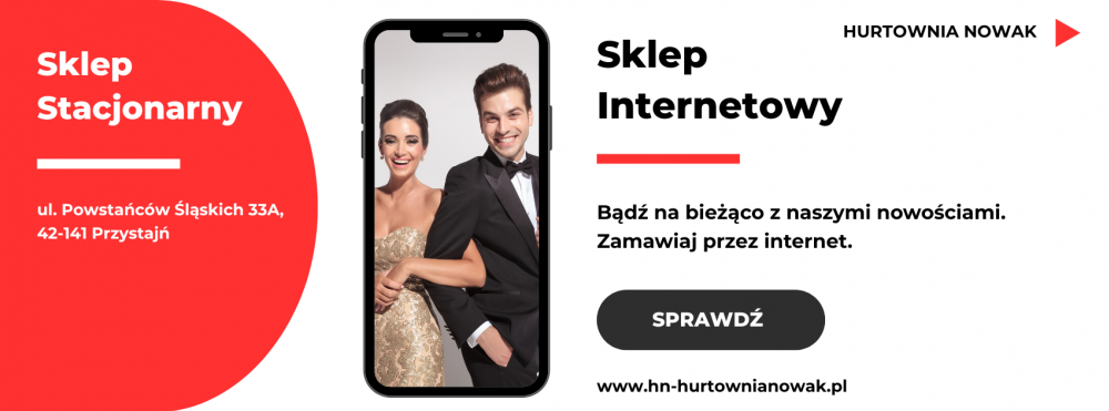 Hurtownia Nowak to miejsce, w którym elegancja spotyka się z codziennym komfortem. Oferujemy elegancką odzież dla kobiet i mężczyzn — od klasycznych garniturów po stylowe suknie wieczorowe i modne kreacje na każdą okazję. W naszym asortymencie znajdują się również kolekcje PLUS SIZE, dzięki czemu każdy może znaleźć coś dla siebie. Uzupełnieniem oferty są starannie dobrane dodatki: paski, torebki, biżuteria oraz akcesoria, które podkreślają indywidualny styl. Dbamy o wysoką jakość materiałów, staranne wykonanie i modny wygląd, aby nasi klienci mogli czuć się elegancko, pewnie i wyjątkowo każdego dnia.